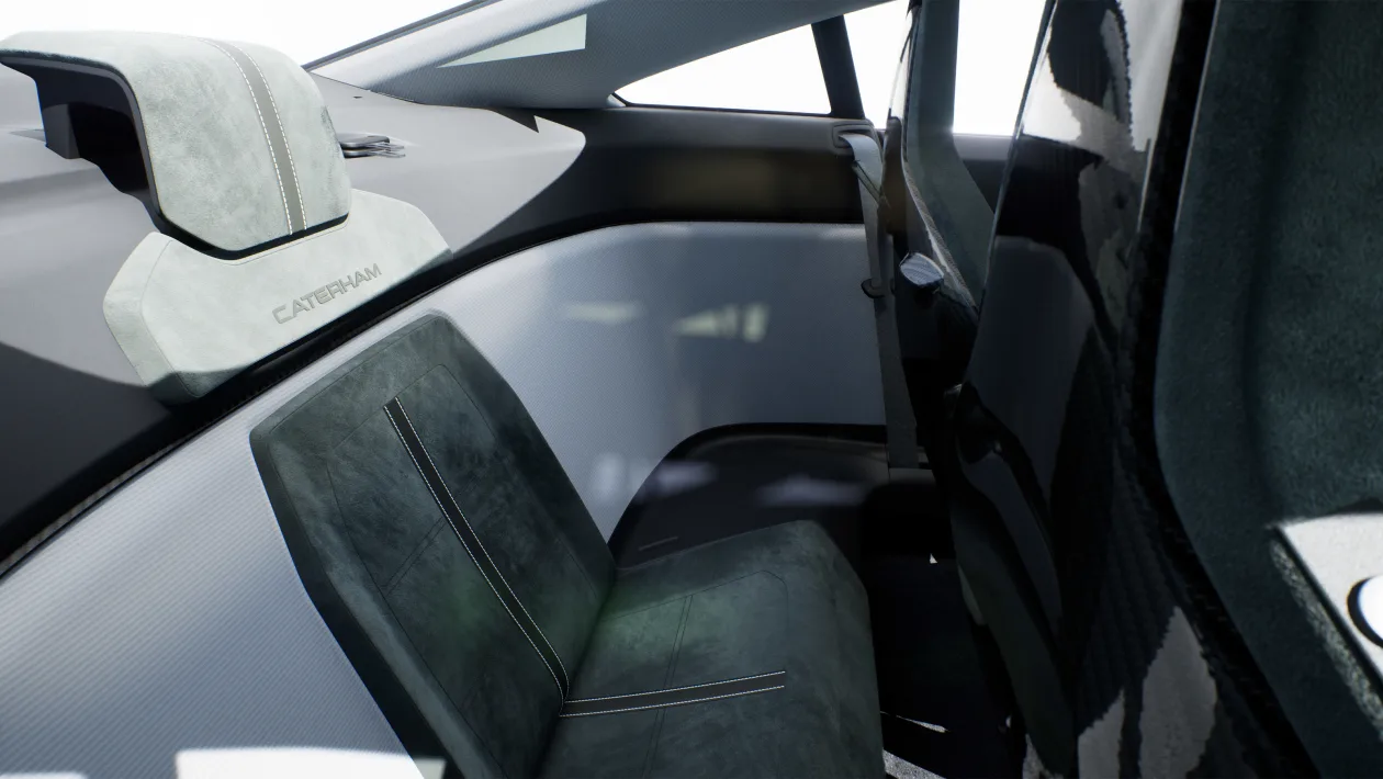 Koncept je koristio bateriju od 55 kWh, a u proizvodnoj verziji energija će dolaziti iz dva odvojena paketa – jednog smještenog sprijeda, drugog iza putnika – kako bi se postigla idealna raspodjela mase. Yamaha je razvila e-osovinu koja bi trebala isporučiti oko 268 KS na stražnje kotače. U praksi to znači sprint do 100 km/h za oko 4,5 sekundi, što je dovoljno brzo za sportski auto koji želi odati počast Caterhamovoj „fun-to-drive“ filozofiji. Procijenjeni domet od 400 kilometara i brzo punjenje od 150 kW (20 do 80 posto za oko 15 minuta) sugeriraju da Caterham ne želi napraviti auto samo za kavu i povratak, nego i nešto što može odraditi track day bez previše drame.