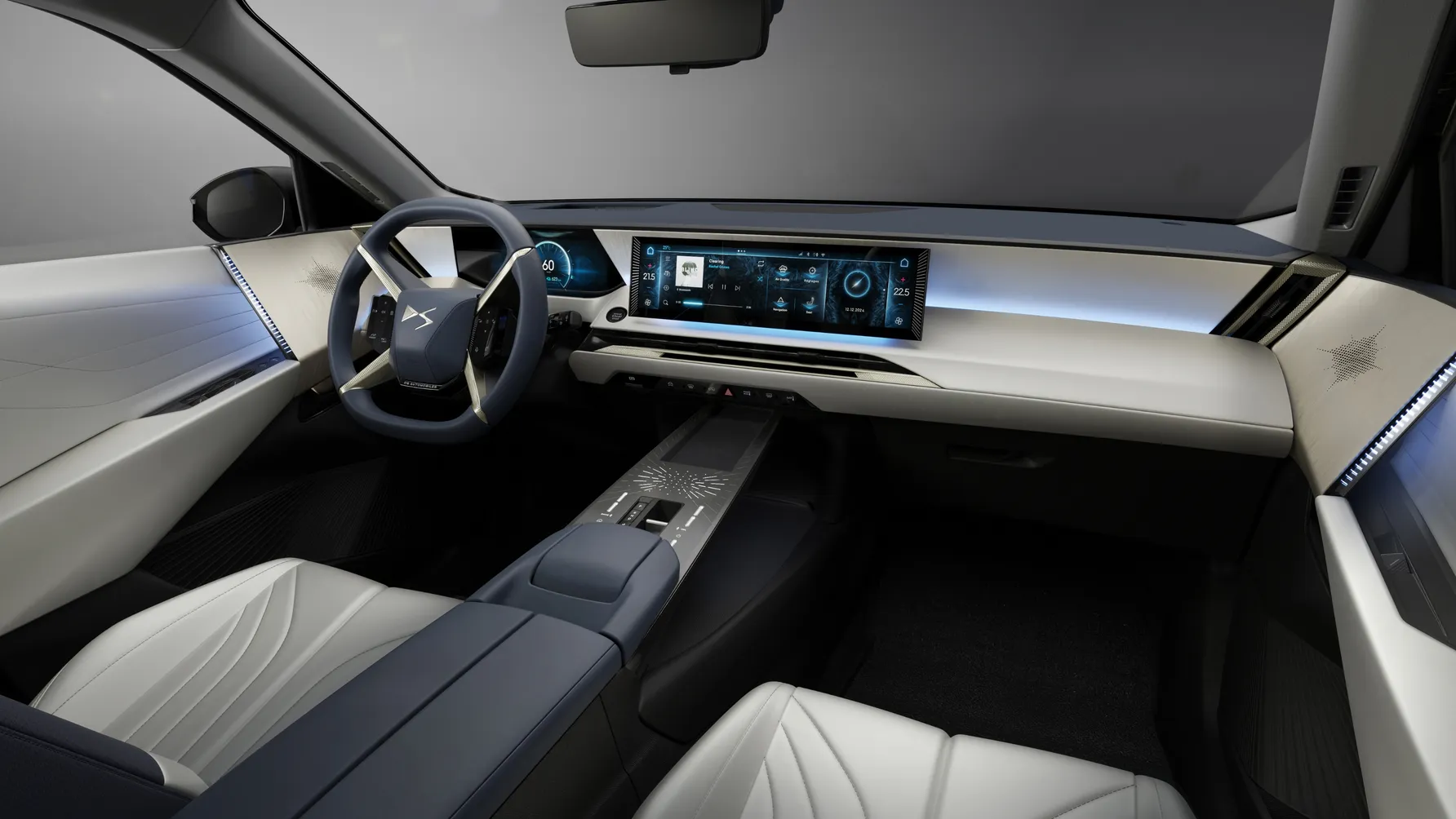 Unutrašnjost je jedan od glavnih razloga zašto DS vjeruje da može konkurirati etabliranim njemačkim rivalima. Kabina je inspirirana većim No8 modelom i kombinira digitalne zaslone s luksuznim materijalima. Središnje mjesto zauzima veliki 16-inčni ekran, uz 10-inčni zaslon za vozača, dok neobičan četverokraki upravljač dodatno naglašava originalnost. DS tradicionalno stavlja naglasak na detalje pa se u interijeru mogu pronaći kombinacije kože, Alcantare i aluminija, uz specifične uzorke i završne obrade koje podsjećaju na izradu luksuznih satova.