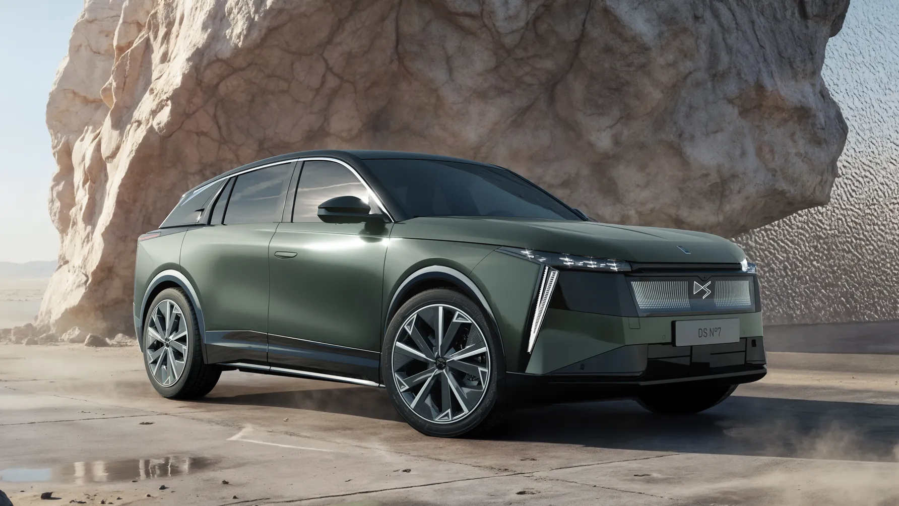 Na prvi pogled jasno je da DS više ne želi igrati na sigurno. Novi No7 donosi dizajn koji se oslanja na veći i upečatljiviji DS No8, ali ga prilagođava klasičnijoj SUV formi. Prednji kraj dominira osvijetljenom maskom i prepoznatljivim V-oblikom dnevnih LED svjetala, dok stražnji dio donosi svjetlosni potpis koji se proteže u obliku slova L. Kontrastni crni krov i opcija dvobojne karoserije dodatno naglašavaju vizualni identitet, dok 21-inčni kotači jasno poručuju da je riječ o modelu koji cilja premium segment.